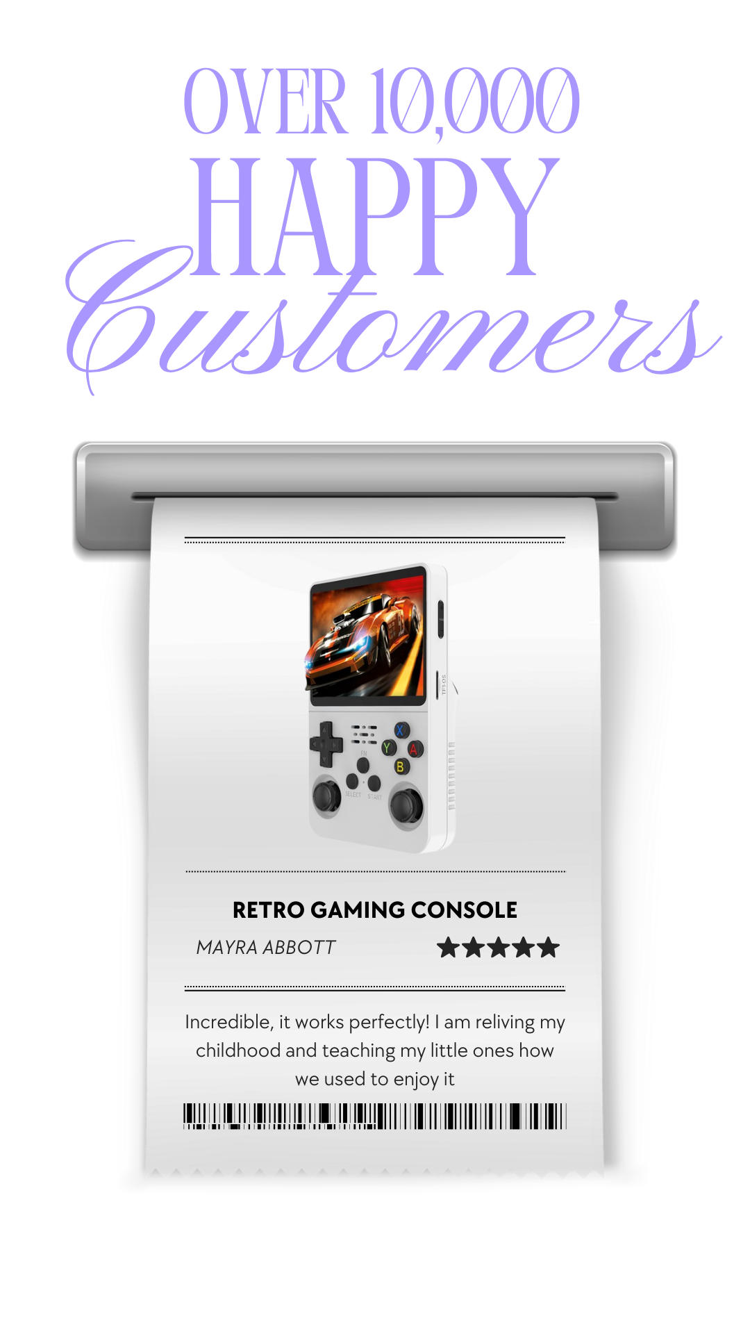 Enjoy countless hours of nostalgic gaming fun with the R36S Retro Gaming Console. This console comes with a 64GB Micro-SD card with over 10,000 classic games already preinstalled, just turn on and play! (No subscription required).
